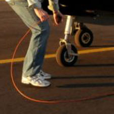 Use ground cable to ground the airplane. Pull cable out until it "clicks" and it will stay. Clip it to the landing gear or exhaust pipe.